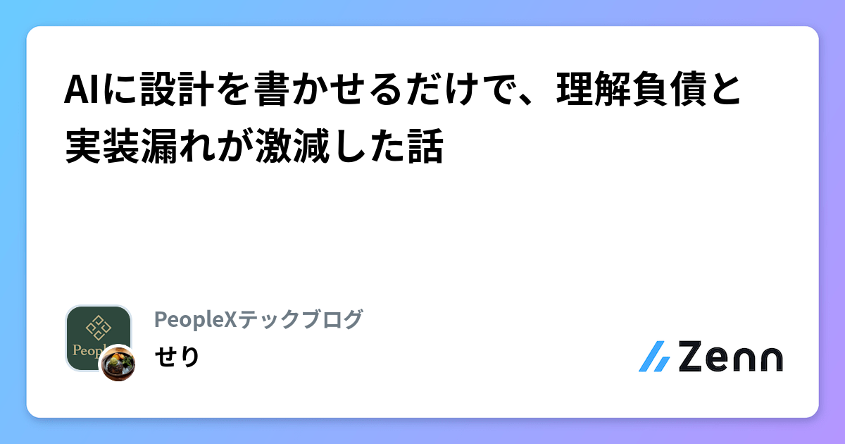 – AIに設計を書かせるだけで、理解負債と実装漏れが激減した話 (zenn_trend)