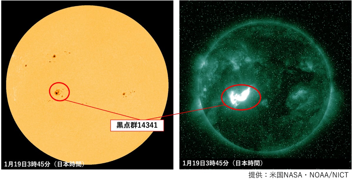 情報通信研究機構(NICT)は1月20日、大規模な太陽フレアとそれに伴う高速コロナガスの地球方向への噴出を確認し、地磁気嵐の発生を報告しました。この影響により、GPSを用いた高精度測位、短波通信、人工衛星の運用などに影響が出る可能性があります。特に、19日午前3時9分に発生したX1.9の太陽フレアは、その規模こそ2025年11月のX5.1には及ばないものの、高エネルギー粒子の放出規模は2003年以来のレベルであり、プロトン現象も3万7000PFUまで上昇しました。NICTが運用する宇宙天気イベント通報システム「セイファー」(SAFIR)は、2025年6月の運用開始以来、初の警報を発令しています。この宇宙天気の乱れは今後半日から1日程度継続する見込みですが、携帯電話通信など一般への影響は限定的とされています。一方で、低緯度オーロラの観測チャンスがあるとも伝えられています。