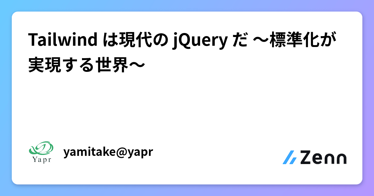 – Tailwind は現代の jQuery だ 〜標準化が実現する世界〜 (zenn_trend)